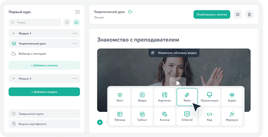 • Подходит для курсов с практической направленностью и интерактивом